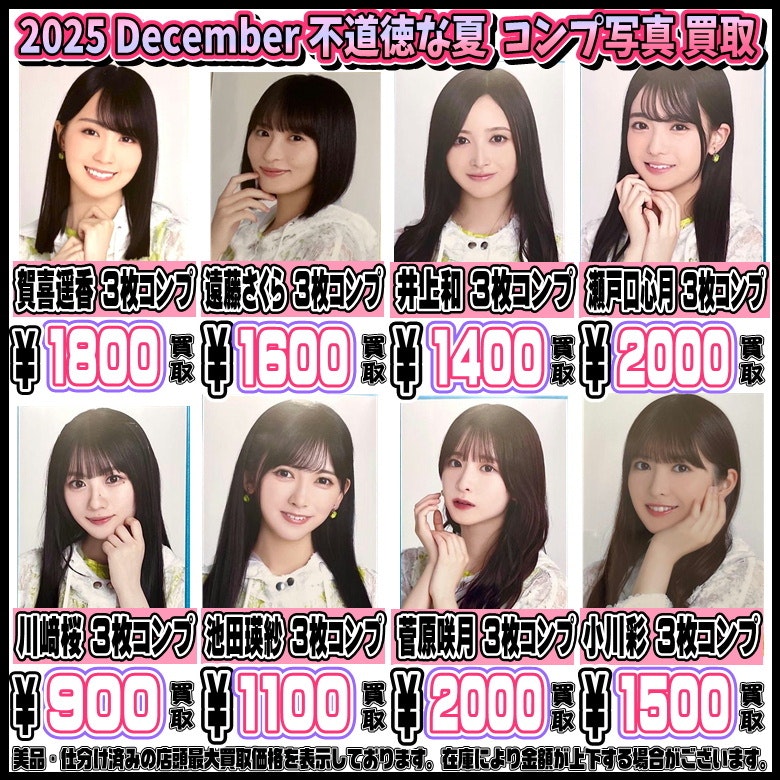 専門店だからできる高額査定!アイドルグッズ専任バイヤーが査定するため適正買取価格はもちろん、希少なアイテムは高額買取いたします。安心してお申込みください。 -