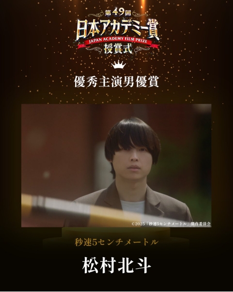 2026年に開催される第49回日本アカデミー賞では、松村北斗が主演男優賞・助演男優賞の優秀賞に選ばれ、さらに話題賞(俳優部門)も受賞するなど大活躍!