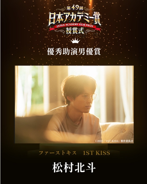 今回、俳優部門で松村北斗が受賞し、作品部門では出演作『ファーストキス 1ST KISS』が選ばれました。